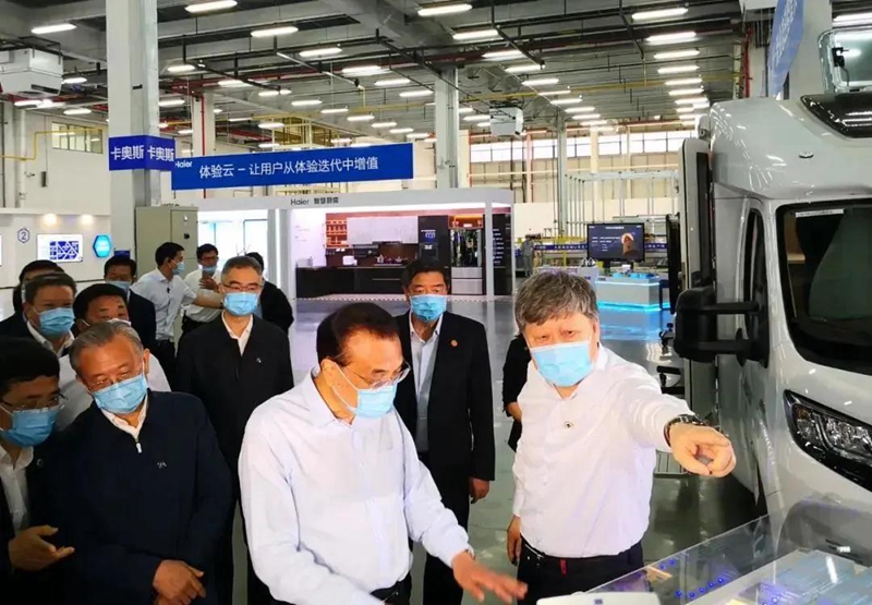 ▲6月2日,李克强总理到海尔视察,听到了海尔工业互联网平台COSMOPLAT的介绍。该平台的综合能源管理部分由南召中森生物科技有限公司提供。